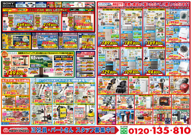 チラシ裏面は、ソニー4K Mini LEDテレビをはじめ、オススメ!あったか商品、オススメ!お掃除家電、冷蔵庫、洗濯機、ジャパネット通販商品を厳選し特別価格にて販売しております。