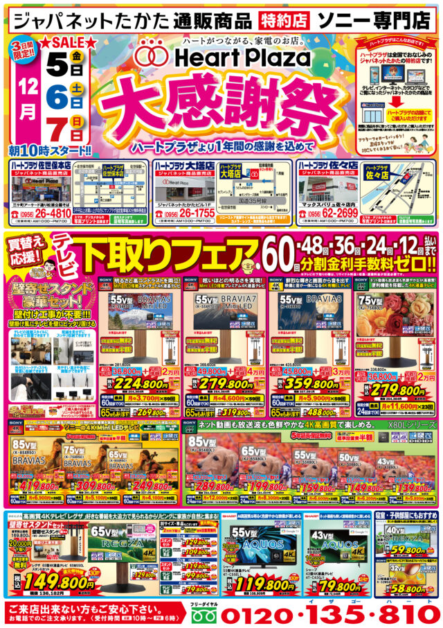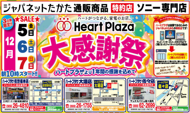 ジャパネットたかた通販商品特約店、ソニー専門店のハートプラザ各店では、